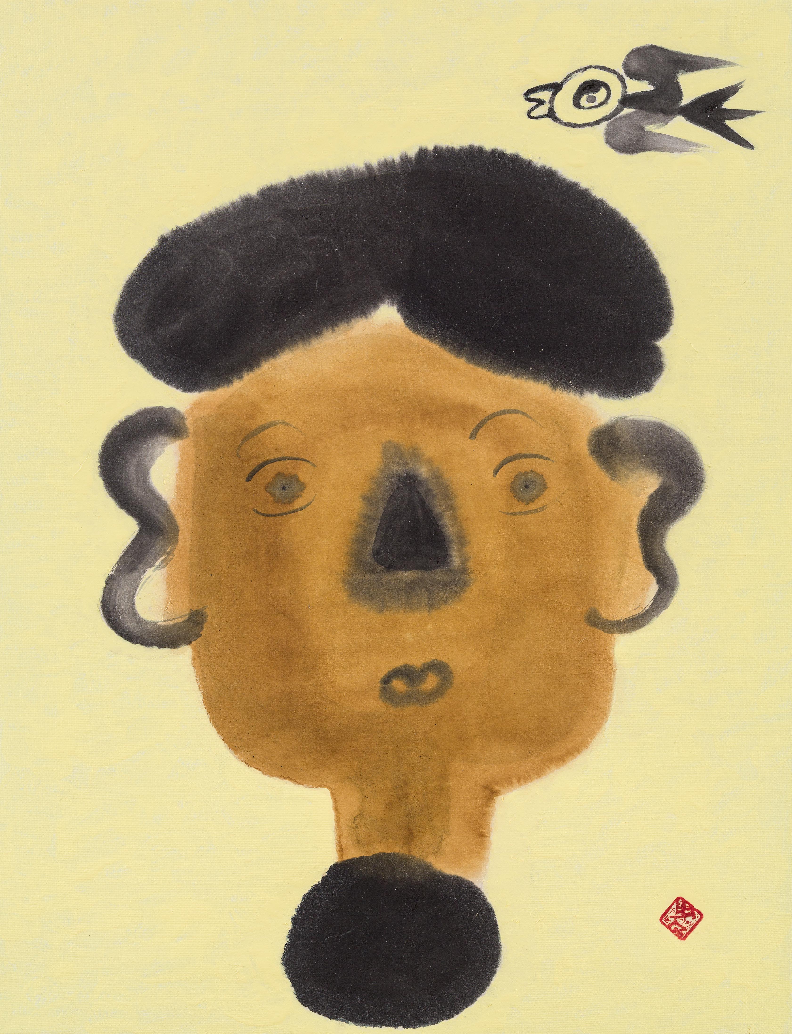 한지에 먹과 채색