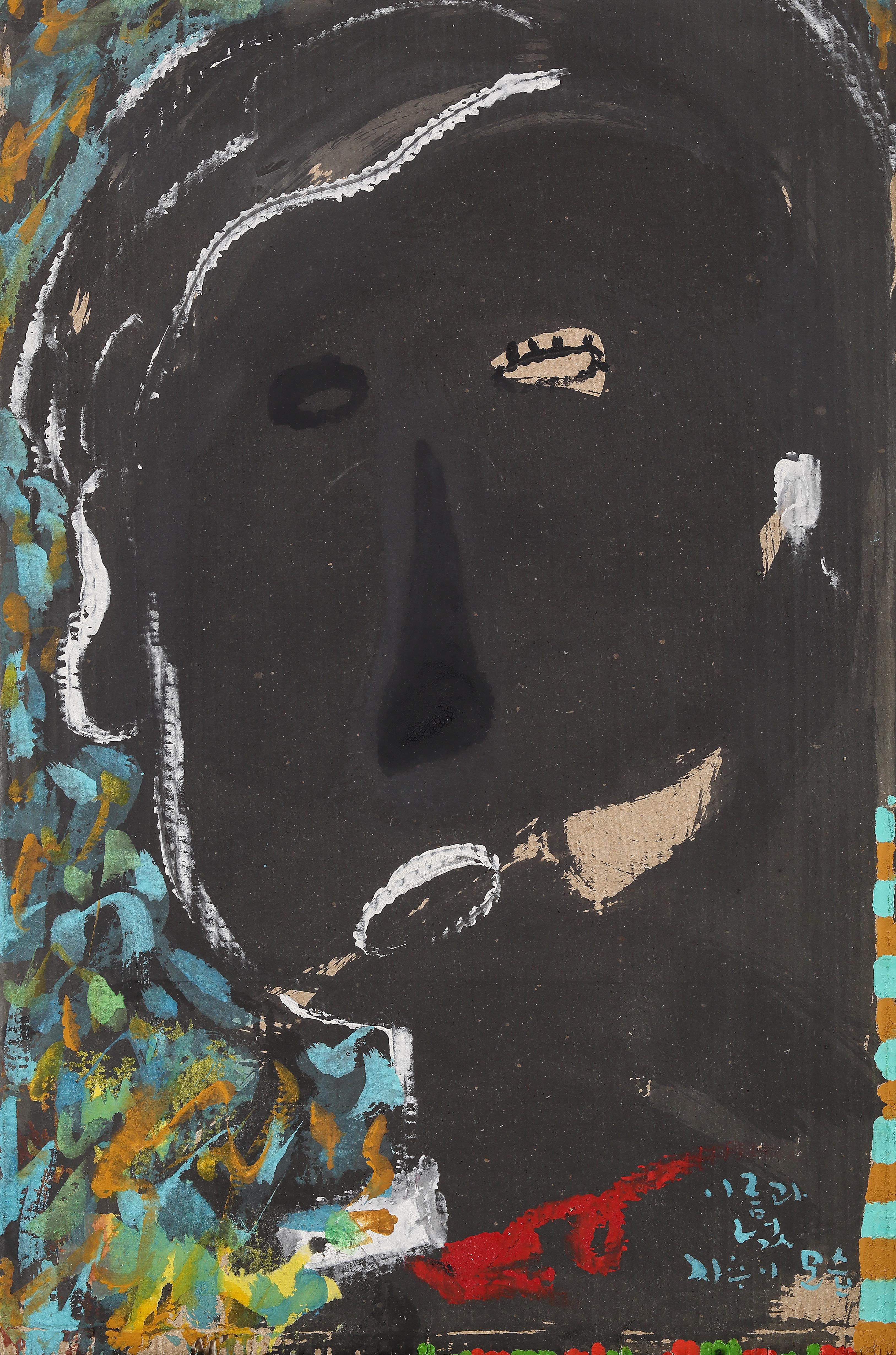 골판지에 먹과 채색